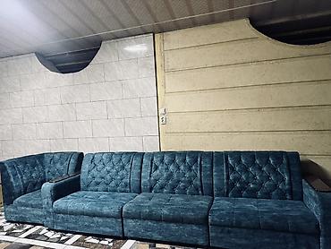 Угловой модульный диван большого формата, обитый мягкой бархатистой тканью насыщенного синего цвета. Основные особенности: - Конфигурация: П-образный/угловой длинный диван из нескольких модулей, ...