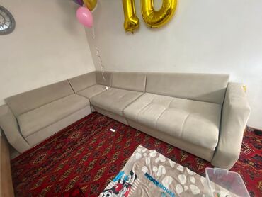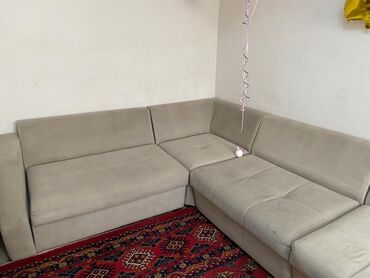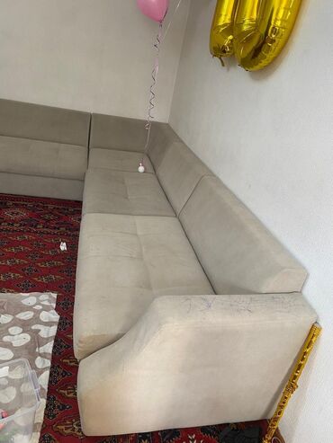 Г. Ош, Кара-суу Срочно продаем! Угловой модульный диван в форме «П» - Современный дизайн, обивка из плотной серой ткани с выразительной фактурой. - Мягкие спинки с декоративной стежкой и крупными...