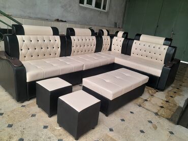 Угловые модульные диваны с пуфами и оттоманкой
