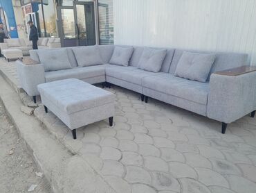 - Формат: L-образные комплекты для гостиной. Варианты исполнения — с длинной оттоманкой и отдельными пуфами/банкеткой.