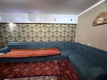 Диван угловой с бархатной обивкой бирюзового цвета и сиденьями из жаккарда с классическим цветочным орнаментом. Основные параметры: - Габариты: длина 350 см, глубина 90 см (по фото с надписью). - ...