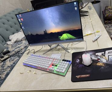 Монитор + клавиатура с мышкой новый только один раз пользовался абсолютно весь комплект новый монитор HUYINIUDA 24 дюймов 100 гц full hd матрица fast ips HDMI VGA в комплекте блок питания +hdmi кабель