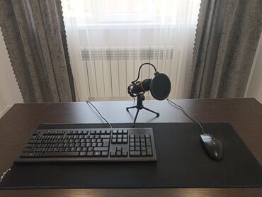 Микрофон — конденсаторный со стойкой, обеспечивает чистый и качественный звук, отлично подходит для общения, стримов и записи.