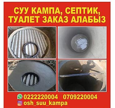 - Строительство монолитных круглых резервуаров из армированного бетона: водяные ёмкости (суу кампа), септики, выгребные ямы, шахты под уличный туалет.