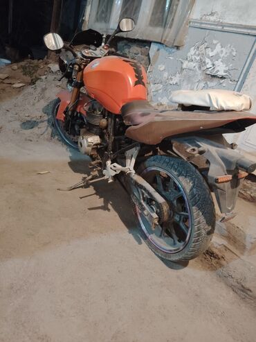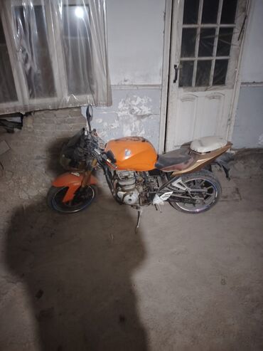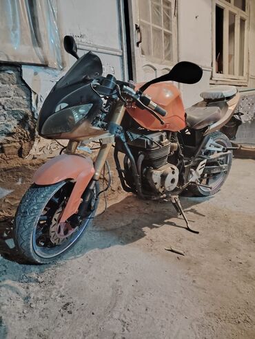 Мотоцикл стрит/нейкед оранжевого цвета с черным лобовым обтекателем