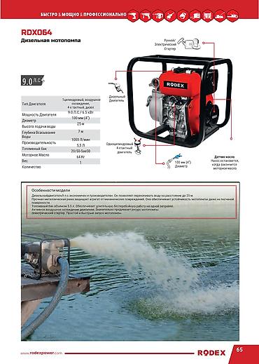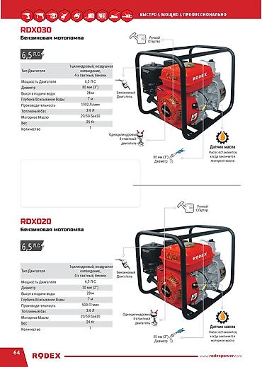 Бензиновая мотопомпа RODEX для перекачки воды 2штуки за 15 Описание: - Мощный бензиновый двигатель с ручным стартером. - Корпус помпы из алюминиевого сплава, устойчив к коррозии. - Защитная стальн...