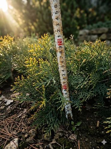 На фото показан реальный размер с мерной рейкой. Отличный выбор для озеленения участков с минимальным уходом.