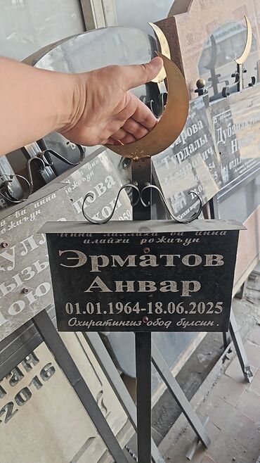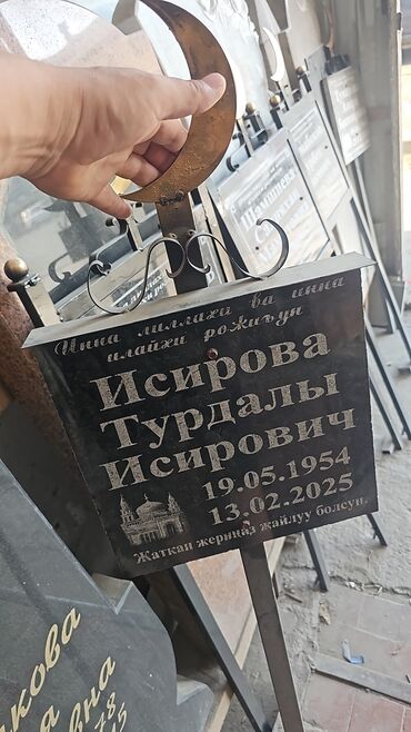 Надгробные таблички и указатели для мусульманских захоронений. - Изготовление табличек на стойке и без, с полумесяцем и декоративными элементами. - Материалы: металл (стойка/рамка), камень или ком...