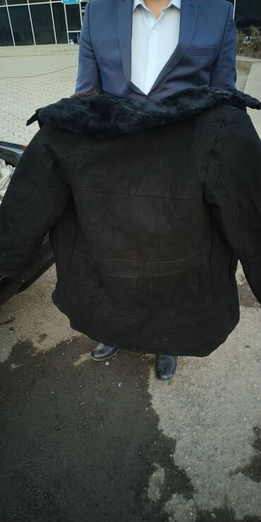 Мужская дублёнка (военный тулуп) из натуральной овчины (мутон), классическая чёрная. Размеры от 46 до 56
