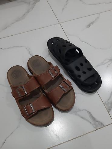 - Сандалии: коричневые, две регулируемые ременные пряжки, анатомическая стелька, открытый носок и пятка. Подходят для лета и дома.