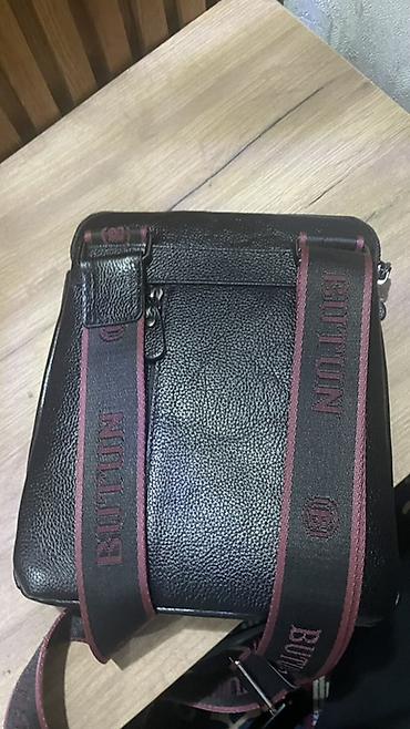 - Регулируемый плотный плечевой ремень с брендингом BUTTUN, двухцветный (чёрный/бордовый), металлические карабины.