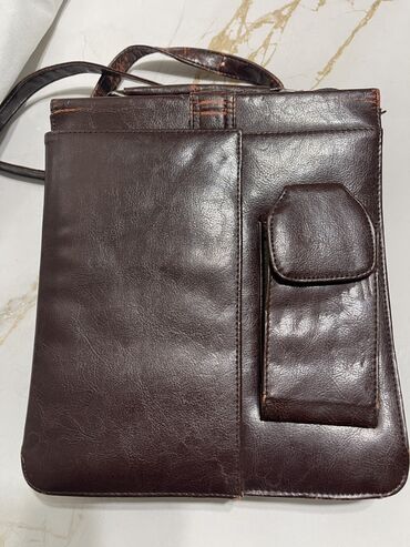Мужская сумка через плечо из тёмно‑коричневой искусственной кожи.