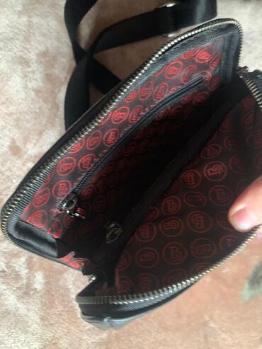 - Материал: фактурная черная кожа (пебл-грейн), плотная подкладка с фирменным принтом в красно-черной гамме.