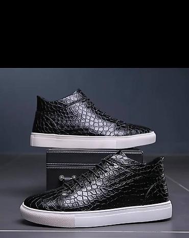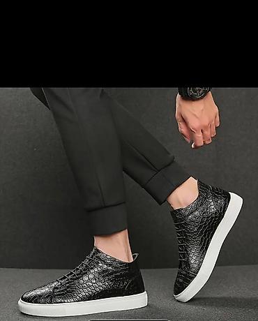 Мужские кеды/кроссовки средней высоты - Цвет: черный с глянцевой