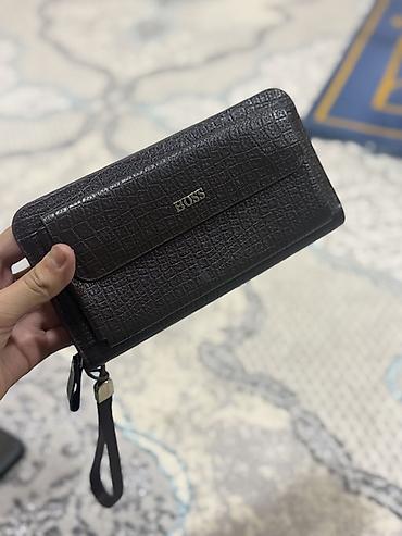 Мужской клатч-кошелек BOSS, темно-коричневый, фактура под крокодила.