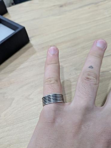 - Кольцо серебристого цвета с пятислойным рельефным дизайном: черные продольные канавки по окружности создают графичный контраст.