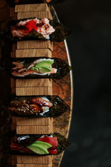 Суши и роллы ручной работы - Классические наборы: нигири с креветкой и лососем, маки и урамаки. - Начинки и топпинги: креветка, лосось, огурец, авокадо, сыр, нори, кунжут. - Рис правильно приготов...