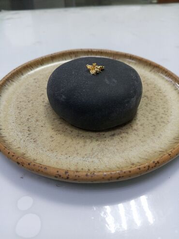 - Десерт: изящное пирожное в стиле вагаси с гладкой черной глазурью и листочком пищевого золота — минималистичная подача и деликатный вкус.