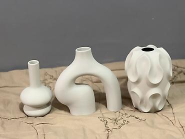 Набор декоративных ваз из белого стекла/керамики классической формы