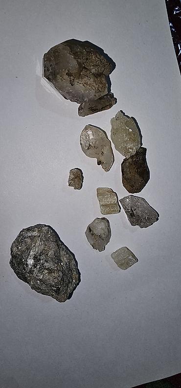 - Подборка природных камней и кристаллов: несколько прозрачных и полупрозрачных фрагментов, встречаются призматические формы, а также темные вкрапления в матрице. Подходят для обучения минералогии, декора, творчества и коллекций образцов.