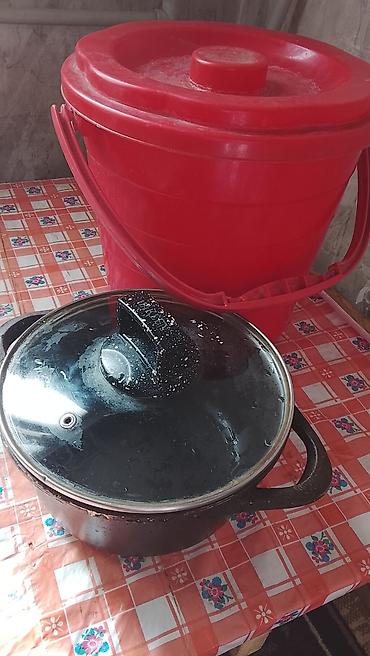 Набор для кухни/дачи: - Пластиковое ведро с крышкой, красное. Удобная