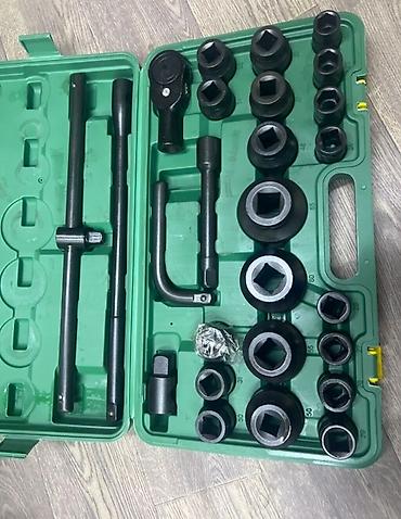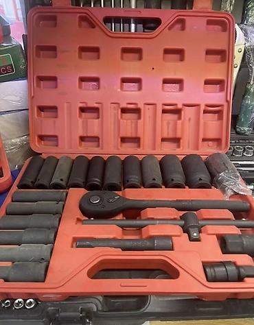 Набор ударных головок и приводов в пластиковом кейсе Состав: - Трещотка с крупным приводом (квадрат) - Скольжащие Т-образные воротки и удлинители разной длины - Шарнир (кардан) и переходник - С-об...