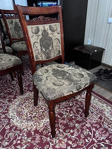 Стул с мягкой обивкой и классическим каркасом. 🪑Продаются стулья — 6 штук 📍 Бишкек 💰 Цена: 900 сом/шт. У некоторых стульев повреждена спинка — можно обшить или надеть чехол и будет как новая! Сам...