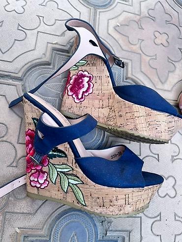 - Танкетка под «пробку» с яркой вышивкой цветов и листьев по бокам