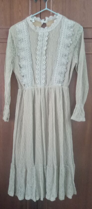4) Кремовое кружевное платье: