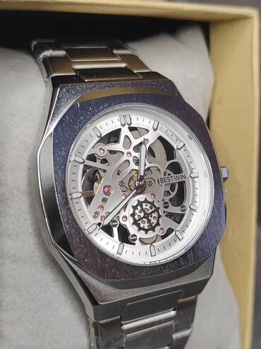 - Декор: видимые шестерни и камни механизма, логотип BESTWIN на циферблате