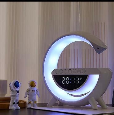 - Управление: верхняя панель с отдельными кнопками (включение, режимы света, управление музыкой/громкостью, будильник).