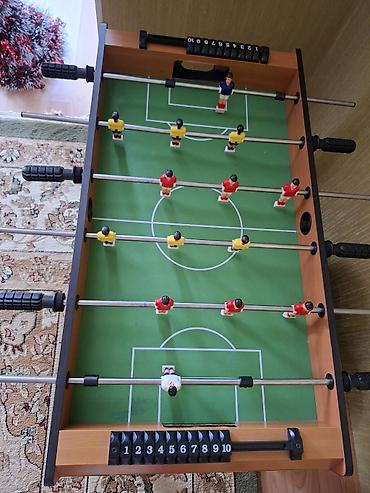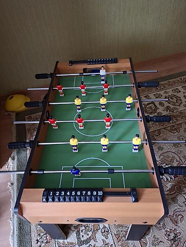 В комплекте: стол, фигурки игроков, штанги с ручками, счетчики голов.