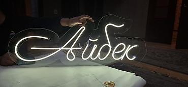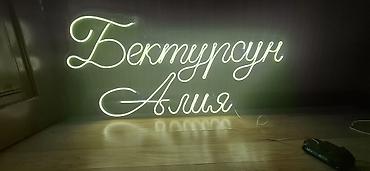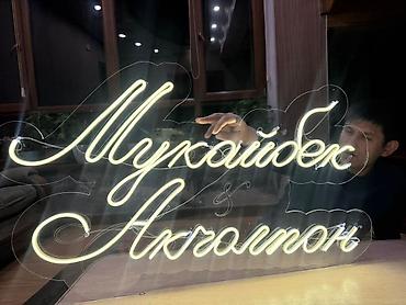 - Индивидуальные световые надписи: имена, поздравления, фразы на русском и киргизском/казахском языках, «Happy Birthday» и др.