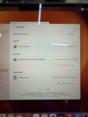 - Процессор: чип Apple Silicon (серии M2) — высокая производительность при низком энергопотреблении, мгновенный выход из сна.