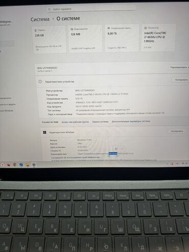 - Процессор: Intel Core i7-8650U, базовая частота 1.9 ГГц (до 2.11 ГГц отображается в системе)