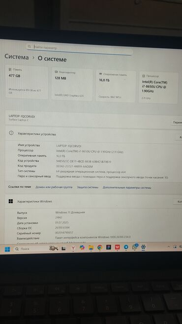 - Модель устройства: Surface Laptop 2.