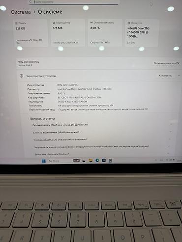Ноутбук, Microsoft Surface, 8 ГБ ОЗУ, Intel Core i7, 13.5 ", Б/у, Для работы, учебы, память SSD