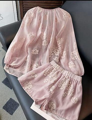 Новый Комплект женской одежды из тонкого полупрозрачного шёлковистого материала в нежно-розовом цвете с вышивкой.