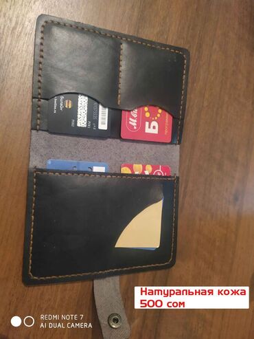 Кошелек из натуральной кожи. Влезает стопка денег и 2 или 4 карты. Сам лично шью изделия и прошиваю каждый шов руками. Кожа натуральная, с очень стойким покрытием, которое не боится капель воды ...