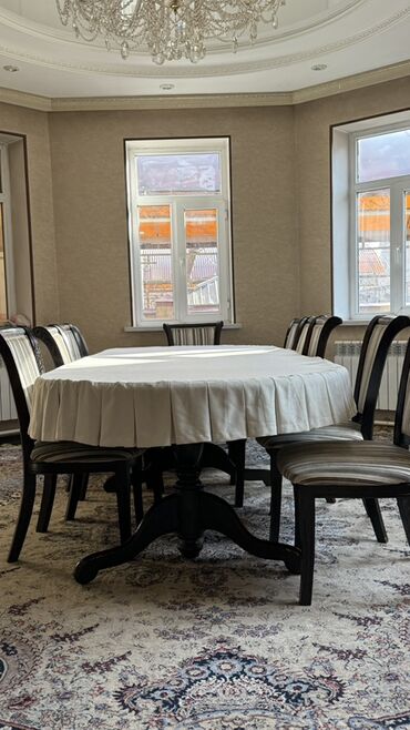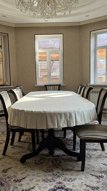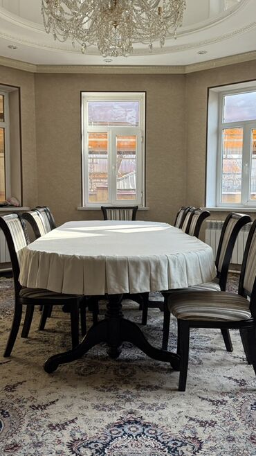 Большой обеденный комплект в классическом стиле: массивный стол и набор 18 стульев+ скатерть в подарок 🎁 . Самовывоз! Размер 4/1.2 Стол: - Форма: овальная столешница с мягкими скруглёнными кромкам...