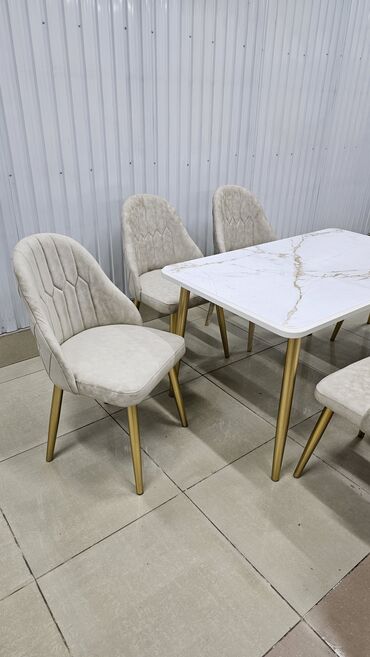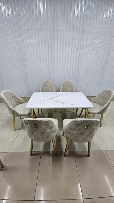 Элегантный стол с мраморной столешницей и 6 мягкими стульями. Современный дизайн с золотистыми ножками идеально подойдет для гостиной или кухни. Удобство, стиль и качество в одном наборе.