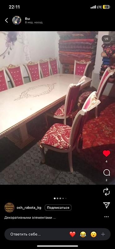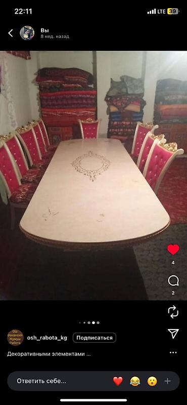ПРОДАЕМ В СВЯЗИ ЧТО НЕ ПОДОШЕЛ К НОВОМУ ЗАЛУ, СОСТОЯНИЕ ИДЕАЛЬНОЕ. САМИ ПОКУПАЛИ ЗА 220000 сом, нету никаких изъян НА ДАННЫЙ МОМЕНТ В ИХ ЖЕ МАГАЗИНЕ он стоит 264000 сом Обеденный гарнитур в клас...