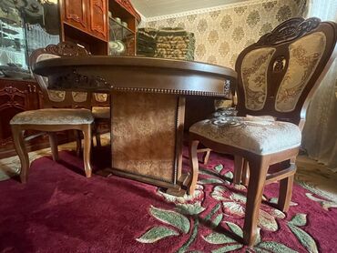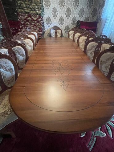Идеально для большой столовой, семейных торжеств и приемов гостей. Стиль — классика/барокко, благородный орех, единый комплект стола и 12 стульев.