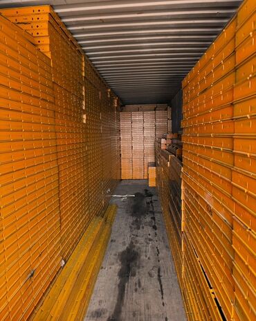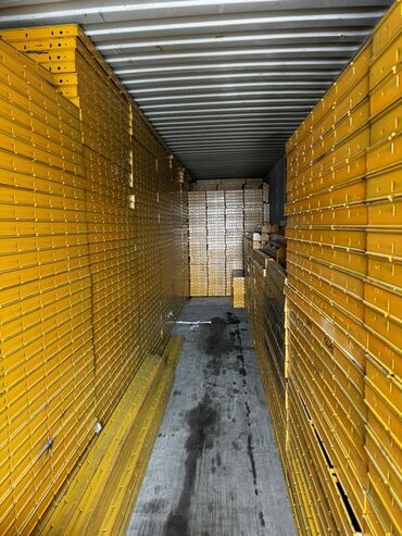 Желтые опалубочные щиты для бетонных работ. Подходят для формирования стен, колонн и других конструкций. Щиты имеют отверстия для фиксации с помощью клиньев и стяжек, что обеспечивает надежность и точность при монтаже. Предназначены для многократного использования на строительных площадках.