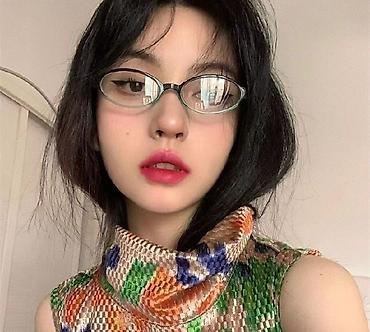 - Форма: вытянутая овальная, узкая линза — акцентирует глаза, придаёт образу винтажный Y2K-флер.