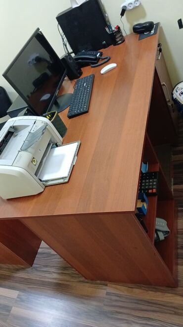 Письменный стол, офисный, б/у Продаю письменный стол. Прочный, устойчивый, без поломок. Подходит для работы, учёбы, офиса или дома. Состояние хорошее. Самовывоз. Торг уместен. Цена: 6 000 сом