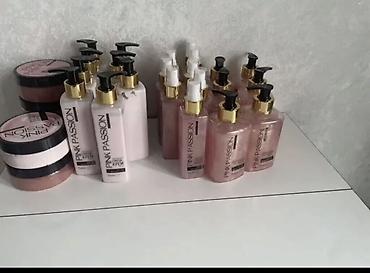 На фото представлены несколько единиц каждого продукта из одной коллекции Pink Passion. Размеры флаконов и банок — как на упаковке (крем 190 г). Серия произведена по ГОСТ, маркировка EAC на упаковке.