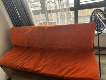Раскладной диван-кровать, текстиль Очень качественный, таких сейчас не делают!!! - Тип: прямой диван с механизмом раскладывания «книжка». - Обивка: плотная ткань (рогожка) ярко-оранжевого/терракот...