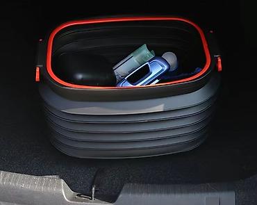 - Вместительная прямоугольная конструкция с гофрированными стенками складывается «гармошкой» для экономии места в багажнике.