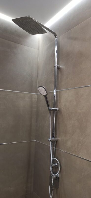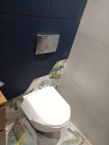 - Санузлы: установка подвесных унитазов с инсталляцией и клавишами смыва, разводка сантехники, душевые зоны с уклоном и линейными трапами, монтаж гигиенических душей.